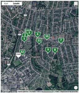 Turen på 2,5 km tager ca. en halv time hvis du går med raske skridt. Hvis du vil nyde turen lidt mere, skal du nok sætte en time af. Turen starter og slutter ved hallen. Tryk på “spil denne quizvandring” og skriv jeres holdnavn og email, så I kan få alle svarene tilsendt bagefter.